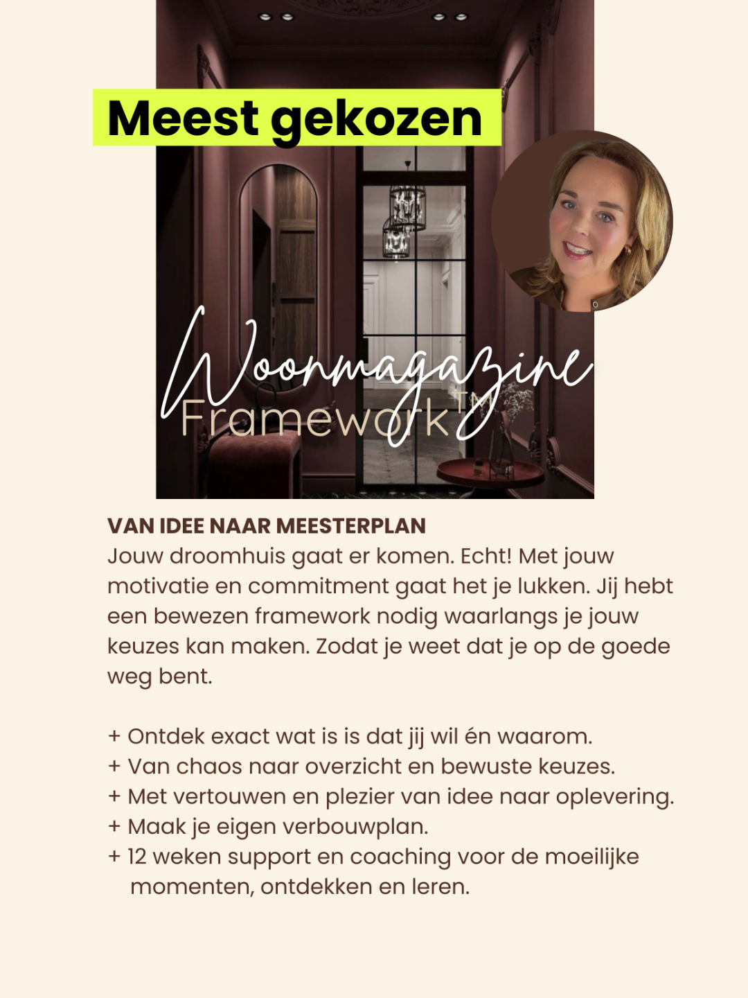 Ik leer je stap-voor-stap hoe je dit doet. Jij hebt toegang tot veel kennis, expertise en inspiratie, zodat jij overzichtelijk alle puzzelstukken van je verbouwing kunt aanpakken en de keuzes maakt die van jouw huis je droomhuis maken.