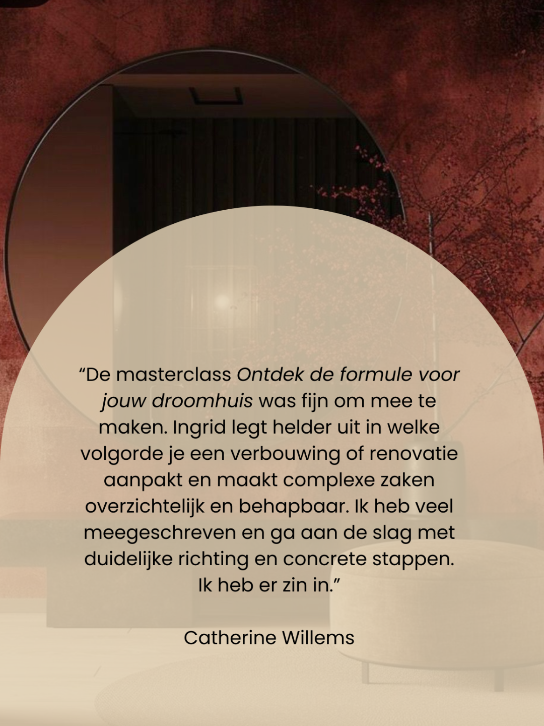Elke avond duiken we diep in één onderwerp. Aan de hand van mijn unieke droomhuis-formule, gaan we samen aan de slag om dit direct op jouw verbouwing toe te passen. Je werkt dus gelijk aan jouw eigen plan. Super efficiënt, leerzaam, maar ook héél erg leuk met elkaar. Alle avonden mag je mij alles vragen. Voor iedereen is het een nieuwe ervaring. Ik zorg voor een vertrouwde sfeer en lots of support.