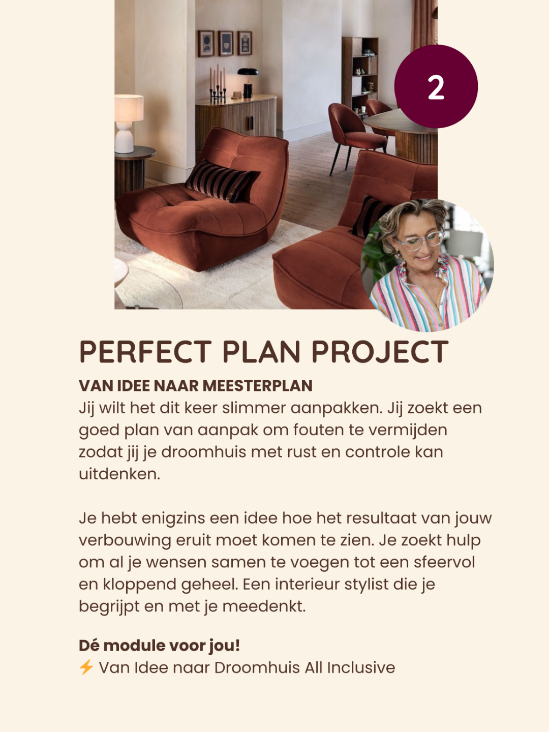Ik ben jouw goede vriendin die al wat verbouwingen achter de rug heeft en je met raad bijstaat en door het proces loodst. Je hoeft namelijk geen nachten wakker te liggen van chaos, geldstress. Je hoeft geen tijd te verspillen aan twijfels. En spijt van overhaaste beslissingen gaat aan jou voorbij. Jij gaat vol vertrouwen aan de slag want je voelt de support en weet zeker dat je de juiste weg bent ingeslagen.
